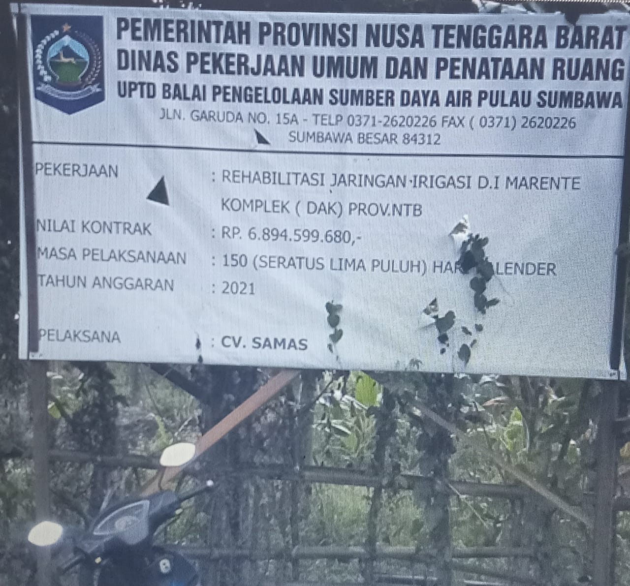 Rehabilitasi jaringan irigasi D.I Embung merente,desa merente, kecamatan alas kabupaten sumbawa tahun 2021 , menjadi pertanyaan bagi lembaga Front Pemuda Peduli Keadilan (FPPK) Pulau Sumbawa terhadap kualitas dan mutu pekerjaannya yang diduga tidak sesuai Anggaran amburadur, sementara anggaran yang dianggarkan rehabilitasi jaringan irigasi embung D.I.desa merente kecamatan alas cukup besar senilai 6.8 miliar rupiah.