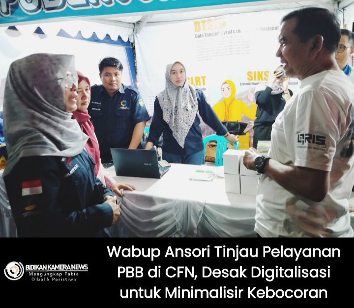 Berdiri gagah di antara stand-stand kuliner dan komunitas, Stand Pelayanan PBB-P2 Bapenda menjadi fokus kunjungan Wabup. Di tempat itu, petugas dari Bidang Kebendaharaan Pajak Daerah (BKP Bendahara) melayani masyarakat secara langsung, mulai dari konsultasi, cek tagihan, hingga pembayaran. Wabup Ansori dengan cermat mengamati setiap proses, berinteraksi dengan petugas, dan menyapa wajib pajak yang memanfaatkan layanan tersebut.