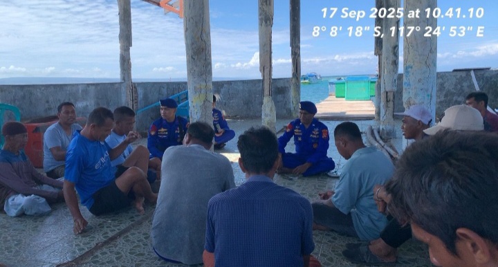 Kapal Polisi XXI – 2014 Ditpolairud Polda NTB melaksanakan Patroli dan Sambang di Desa Bajo Pulau Medang Kec. Lab Badas kabupaten Sumbawa sampaikan Pesan Kamtibmas bagi Masyarakat Pesisir, rabu (17/9/2025).