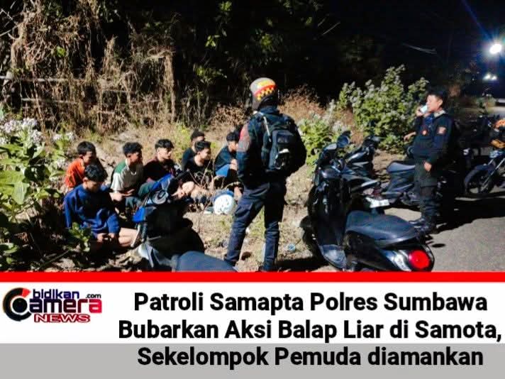 Sumbawa Besar, bidikankameranews.com – Tim patroli Satsamapta Polres Sumbawa membubarkan serta mengamankan sekelompok pemuda yang diduga terlibat dalam aksi balap liar di kawasan Samota, Kecamatan Sumbawa, pada Kamis malam (18/9/2025).