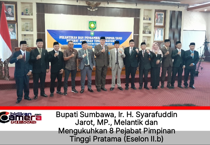 Sumbawa Besar, bidikankameranews.com – Bertempat di Kantor Bupati Sumbawa, Bupati Ir. H. Syarafuddin Jarot, MP., secara resmi melantik dan mengukuhkan 8 (delapan)Pejabat Pimpinan Tinggi Pratama (Eselon II.b) di Lingkungan Pemerintah Kabupaten Sumbawa.