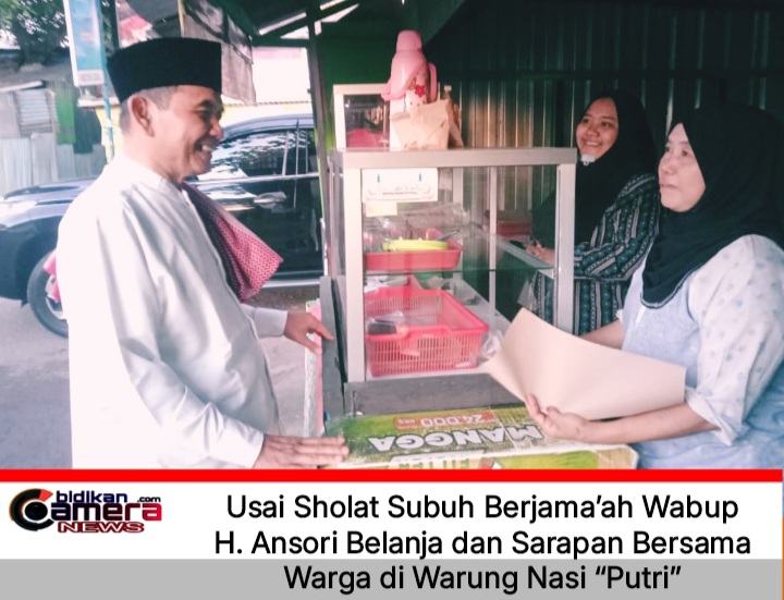 Usai Sholat Subuh Berjama’ah Wabup H. Ansori Belanja dan Sarapan Bersama Warga di Warung Nasi “Putri”