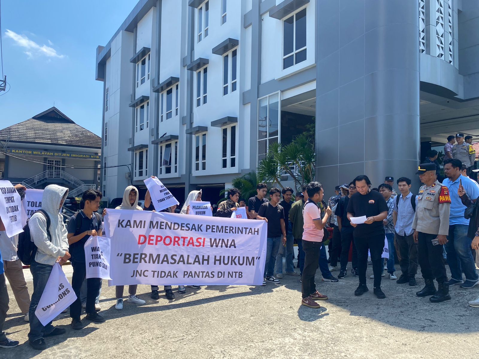 Aksi Masa Desak Imigrasi Klas I TPI NTB, Deportasi JC Selaku Dirut PT BSS, ” Diduga Melakukan Pelanggaran Kemigrasian dan Berusaha Tanpa Ijin “