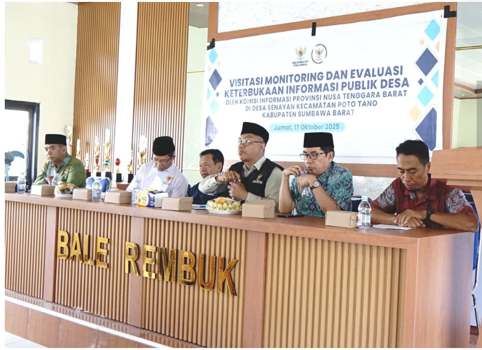 Taliwang, bidikankameranews.com – Desa Senayan, Kecamatan Poto Tano, Kabupaten Sumbawa Barat menjadi satu-satunya desa di Pulau Sumbawa yang menerima kunjungan Tim Visitasi Monitoring dan Evaluasi (Monev) Keterbukaan Informasi Publik Desa Tahun 2025 dari Komisi Informasi Provinsi Nusa Tenggara Barat (NTB). Kegiatan ini berlangsung pada Jumat (17/10) di Aula Bale Rembuk, Kantor Desa Senayan.