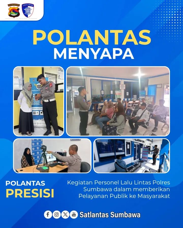 Program “Polantas Menyapa” menjadi upaya meningkatkan kualitas pelayanan publik serta membangun kedekatan dengan masyarakat sekaligus langkah strategis Satlantas Polres Sumbawa dalam mewujudkan pelayanan publik yang transparan, humanis, dan berintegritas.