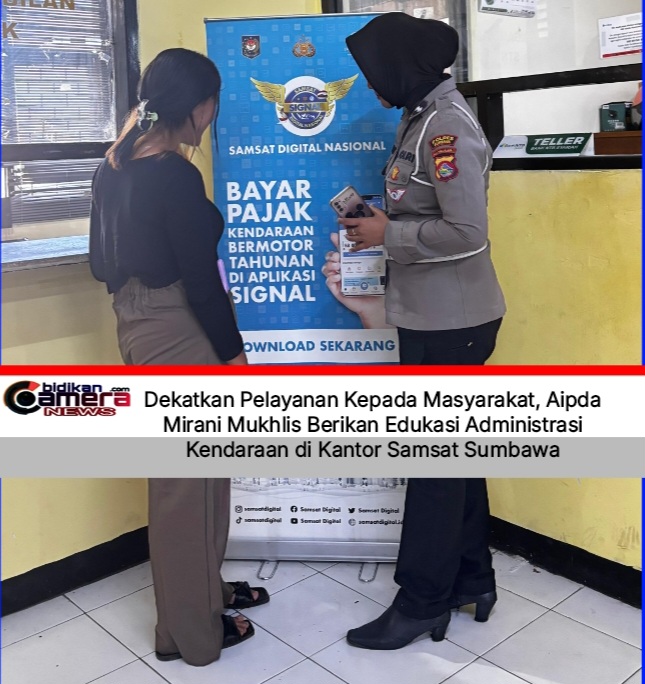 Salah satu pelayanan di Kantor Samsat Kab. Sumbawa, petugas Satlantas Polres Sumbawa, Aipda Mirani Mukhlis terlihat sedang memberikan edukasi kepada masyarakat wajib pajak dalam hal mengurus administrasi kendaraannya, selasa pagi (04/10/2025).