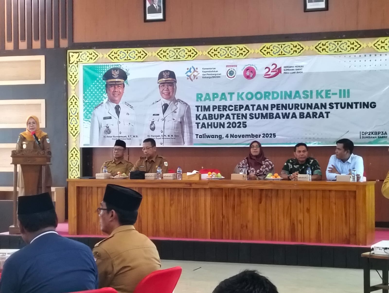 Kepala Dinas Pemberdayaan Dinas Pengendalian Penduduk, Keluarga Berencana, Pemberdayaan Perempuan, dan Perlindungan Anak (DP2KBP3A) Kabupaten Sumbawa Barat, Agus Purnawan S.Pi, MM, dalam laporan nya menyampaikan Rapat Koordinasi ke-3 Tim Percepatan Penurunan Stunting (TPPS) Kabupaten Sumbawa Barat Tahun 2025, bahwa perkembangan kegiatan pencegahan stunting sebagaimana diketahui bersama menunjukkan peningkatan setiap tahun.