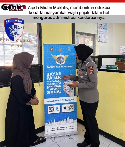 Pantauan media ini di Kantor Samsat Kab. Sumbawa pada jumat (14/11/2025) terlihat petugas Satlantas Polres Sumbawa, Aipda Mirani Mukhlis, memberikan edukasi kepada masyarakat wajib pajak dalam hal mengurus administrasi kendaraannya.