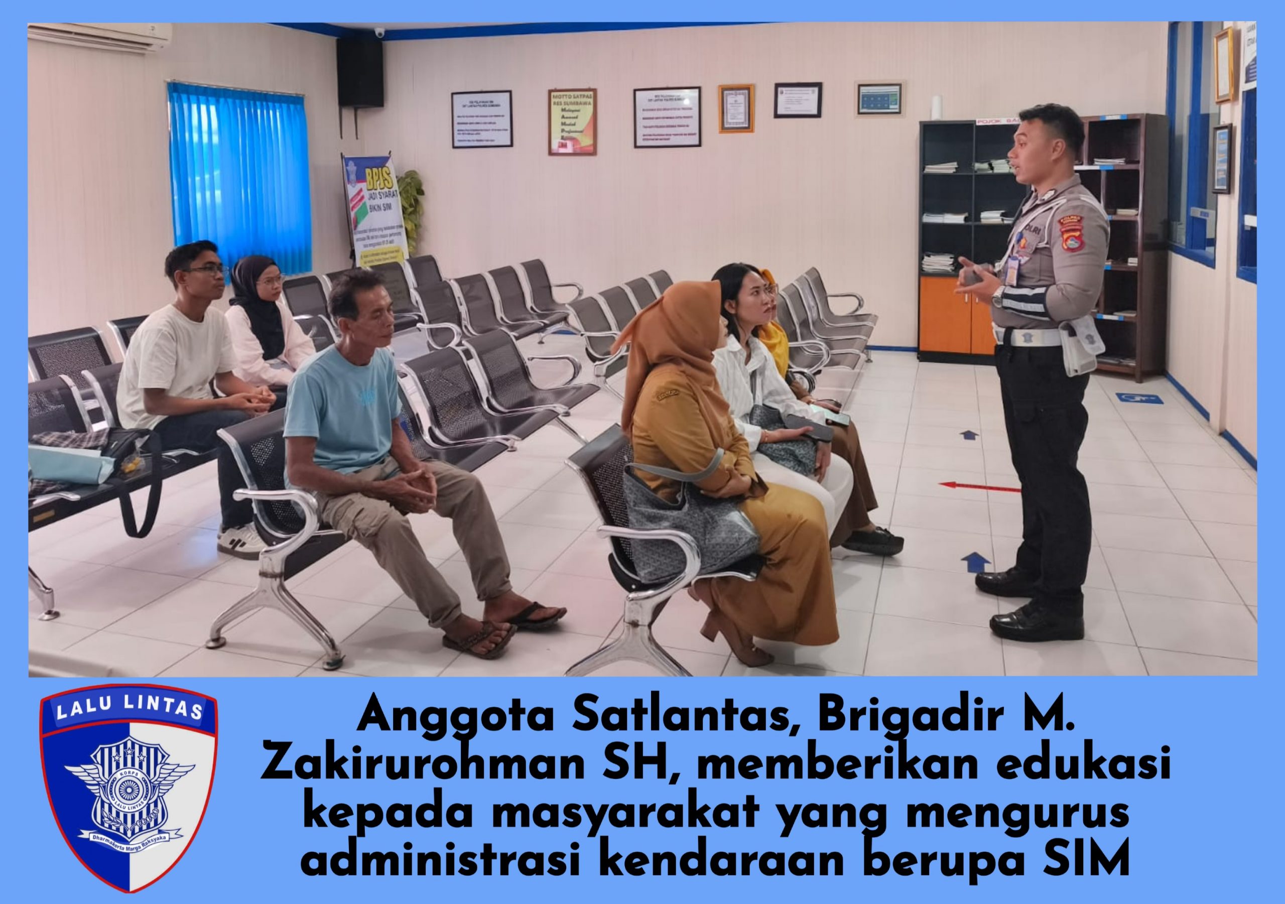 Dari pantauan wartawan media ini pada rabu (19/11/2025), salah seorang anggota Satlantas, Brigadir M. Zakirurohman SH, memberikan edukasi kepada masyarakat dalam hal mengurus administrasi kendaraan berupa SIM. ini menunjukkan bahwa kegiatan tersebut sebagai bentuk komitmen Polri dalam memberikan pelayanan yang transparan dan humanis.