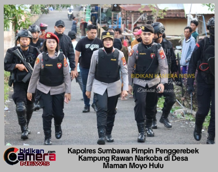 Sumbawa Besar, bidikankameranews.com — Tim Gabungan dipimpin Kapolres Sumbawa melaksanakan penggerebekan skala besar di kawasan yang teridentifikasi sebagai Kampung Rawan Narkoba.