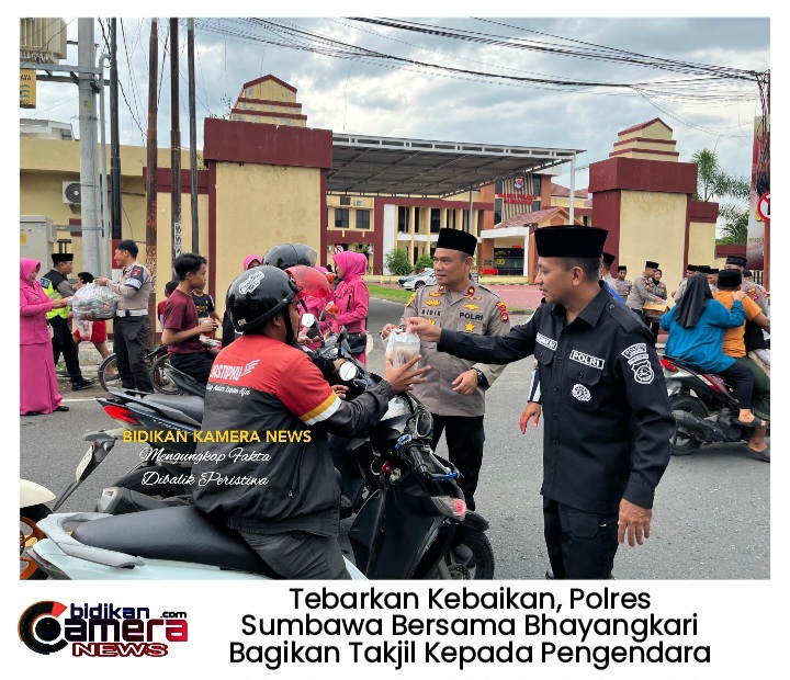 Bidikankameranews.com – Momen bulan suci Ramadan menjadi ajang bagi jajaran Polres Sumbawa untuk mempererat tali silaturahmi dengan masyarakat. Pada Sabtu (21/02/2026) sore, Wakapolres Sumbawa memimpin langsung kegiatan pembagian takjil gratis kepada para pengguna jalan yang melintas di depan Mako Polres Sumbawa.