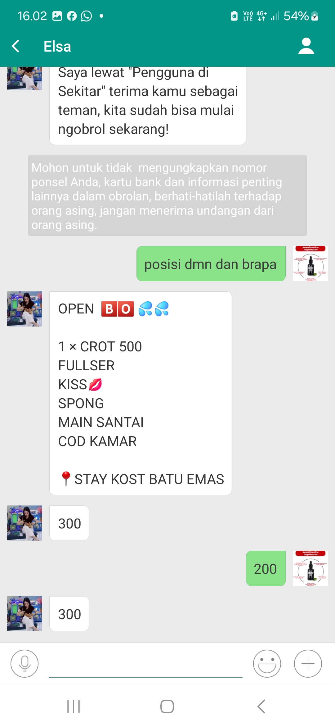 Michat, kemudian membuat kesepakatan harga dan meminta tamu untuk ke kamar hotel , kos atau penginapa yang